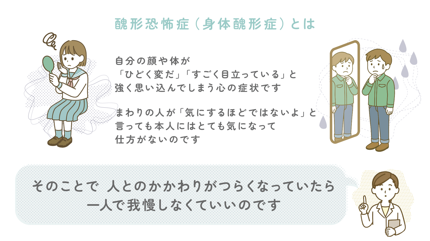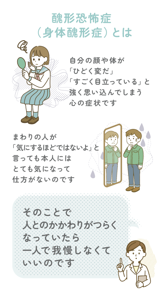 醜形恐怖症は、自分の見た目に強い不安を感じてしまう心の病気です。