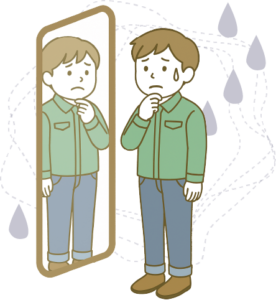 見た目を気にする気持ちがとても強くなり、心が疲れてしまう状態です。