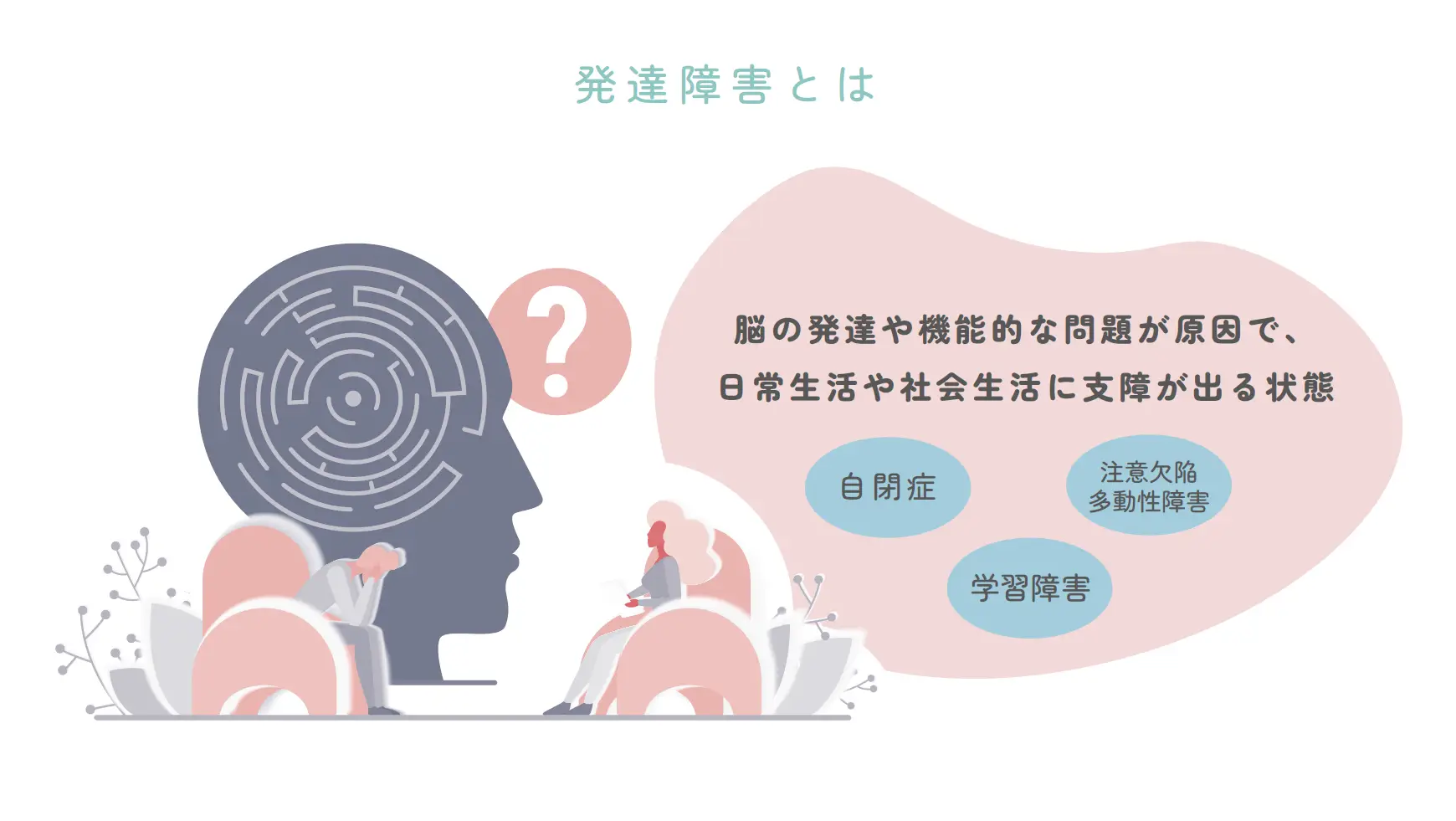 発達障害は、脳の発達や機能的な問題が原因で、日常生活や社会生活に支障が出る状態のことです。 発達障害者支援法第2条によって「自閉症、アスペルガー症候群その他の広汎性発達障害、学習障害、注意欠陥多動性障害その他これに類する脳機能の障害であってその症状が通常低年齢において発現するもの」と定義されています。 発達障害で見られる症状や発達障害の種類について詳しく解説します。