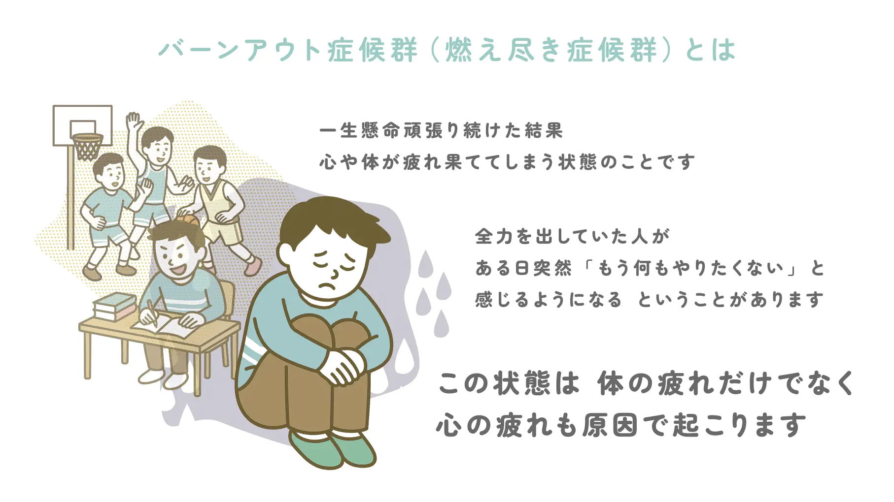 たとえば、学校の部活でキャプテンを務め、チームをまとめるために全力を出していた人が、ある日突然「もう何もやりたくない」と感じるようになる、ということがあります。