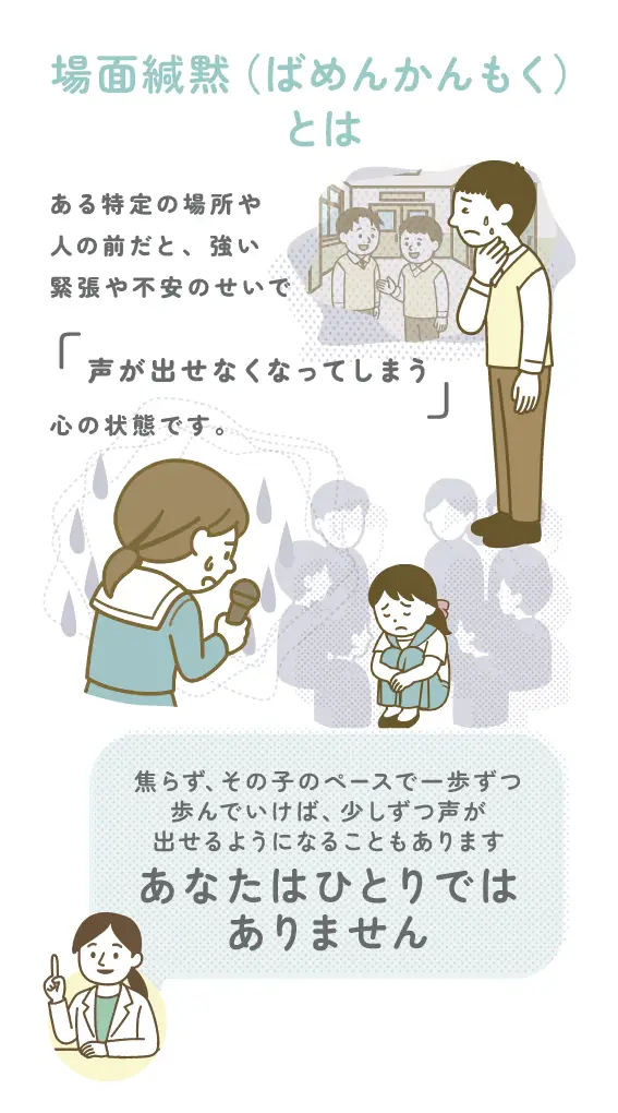 場面緘黙(ばめんかんもく)は、声が出ない病気ではありません。