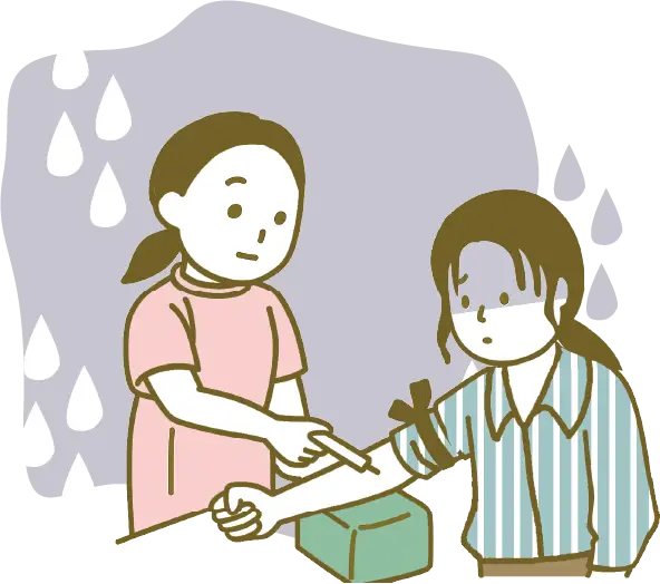 注射そのものがこわいだけでなく、針を見るのがこわい(針恐怖症)人や、血を見たり想像したりすると気持ち悪くなる(血液恐怖症)の人もいます。