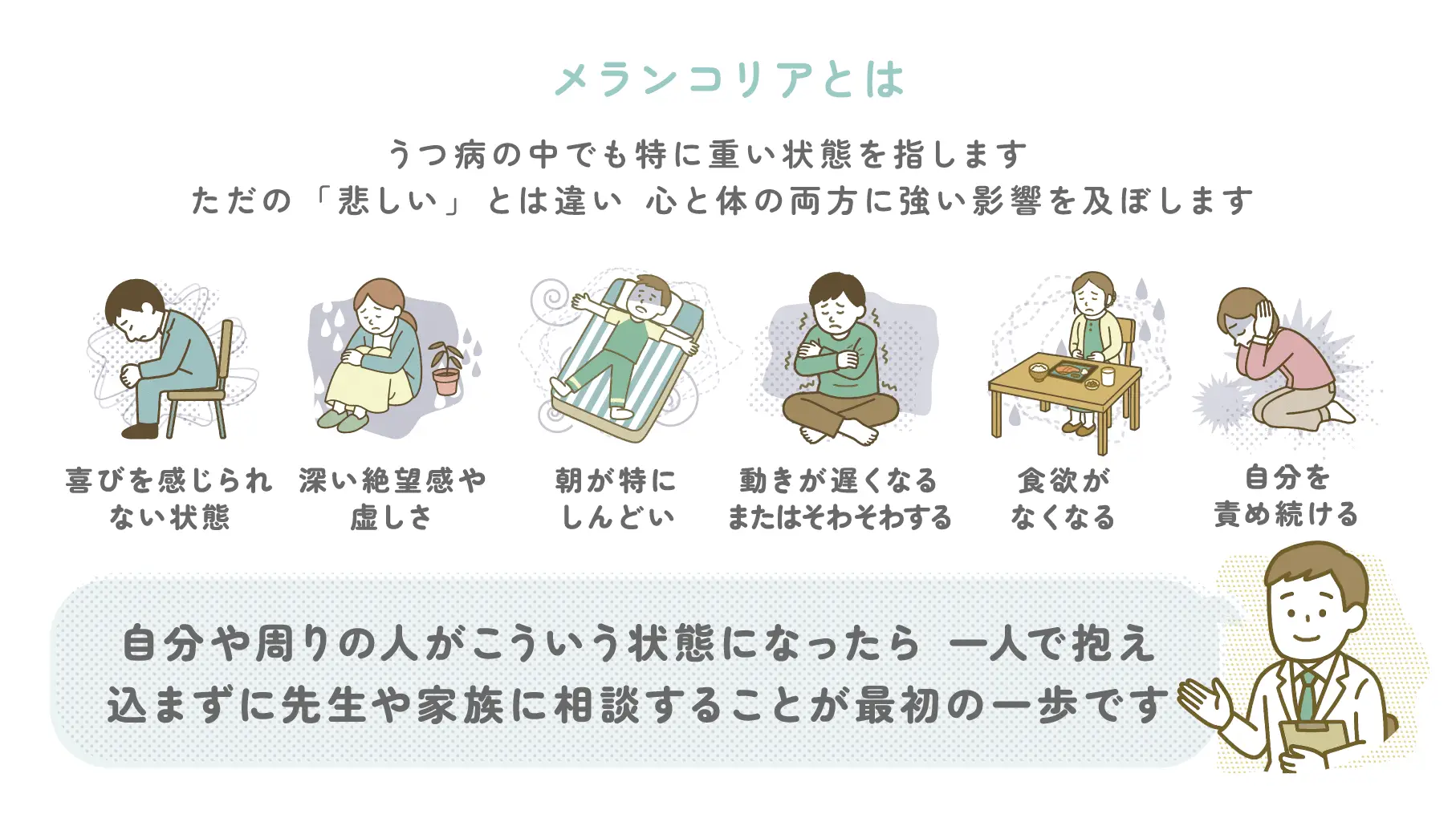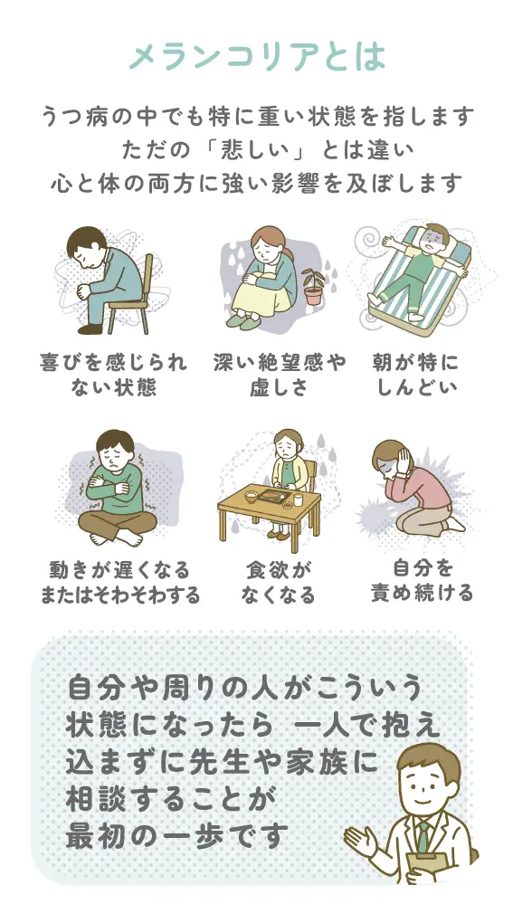 メランコリアは、ただ「元気がない」だけではなく、心の病気として深刻な状態です。